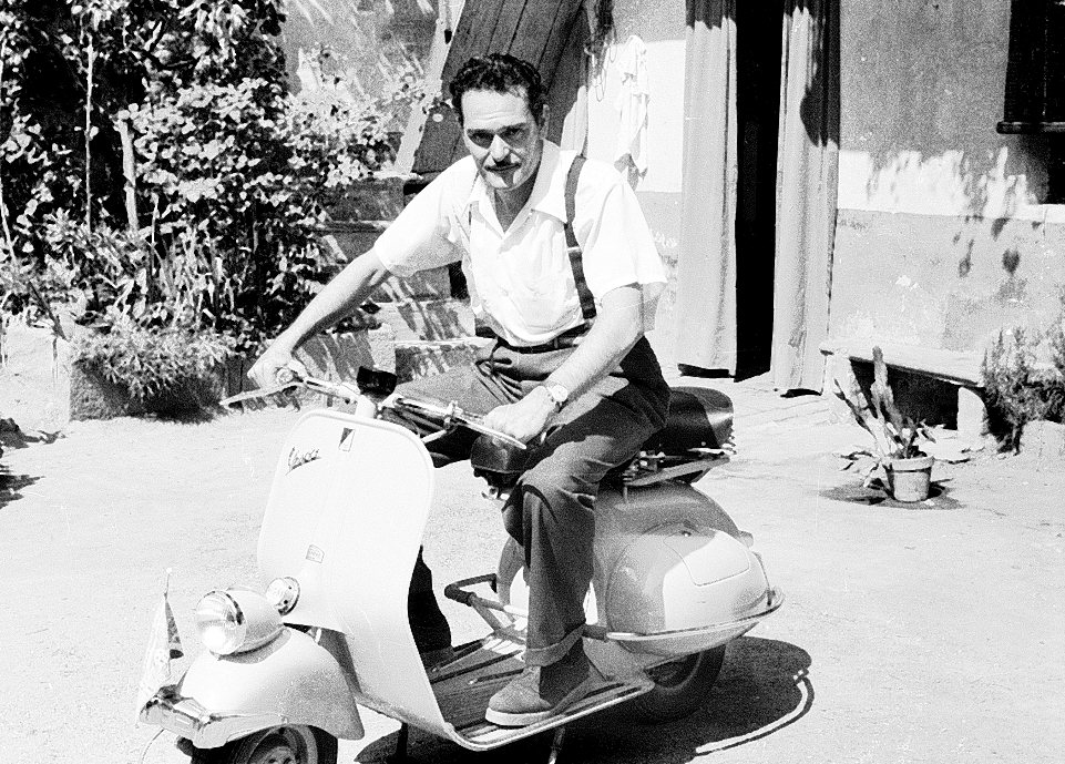 My father on a Vespa in Calabria around 1939. These little scooters were ubiquitous in Italy.